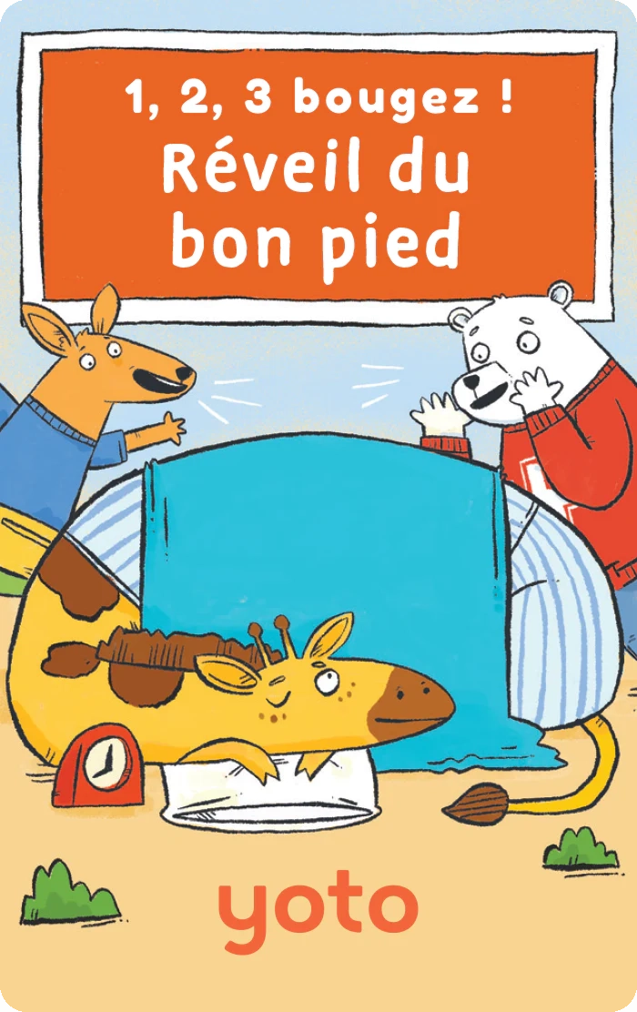 Aidez Kangourou, Girafe et Ours Polaire à réveiller le soleil, à organiser un concours de danse, à se détendre avec des exercices d’étirement et plus encore. Ces cartes audios sont bourrées d’activités rigolotes, conçues pour faire bouger vos enfants au quotidien, dans la maison comme à l'extérieur.
