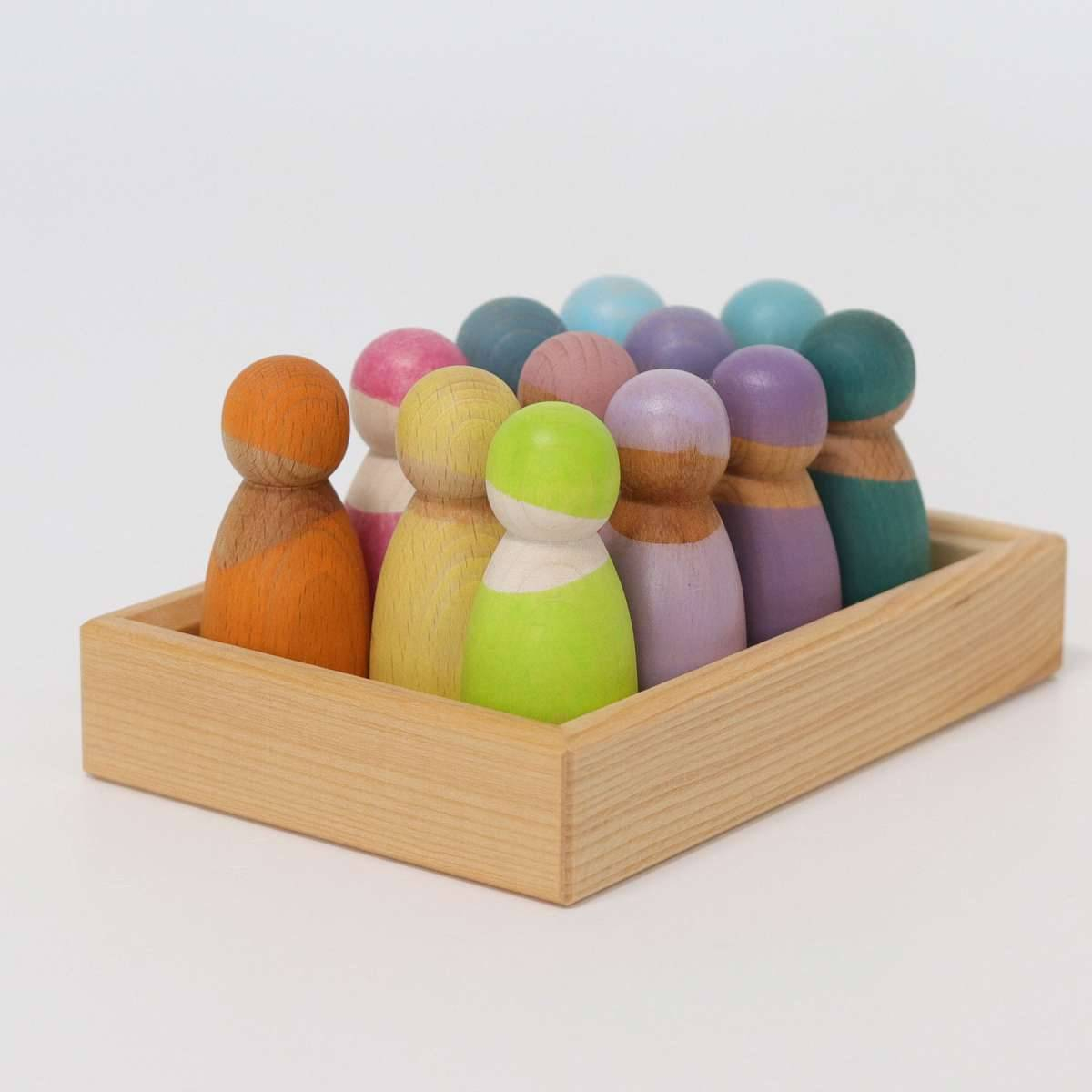 12 amis figurines pastel en bois - Grimm's
