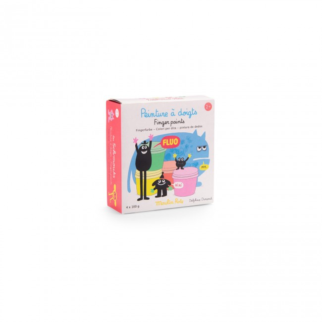 4 pots de peinture à doigts fluo Les Schmouks Moulin Roty
