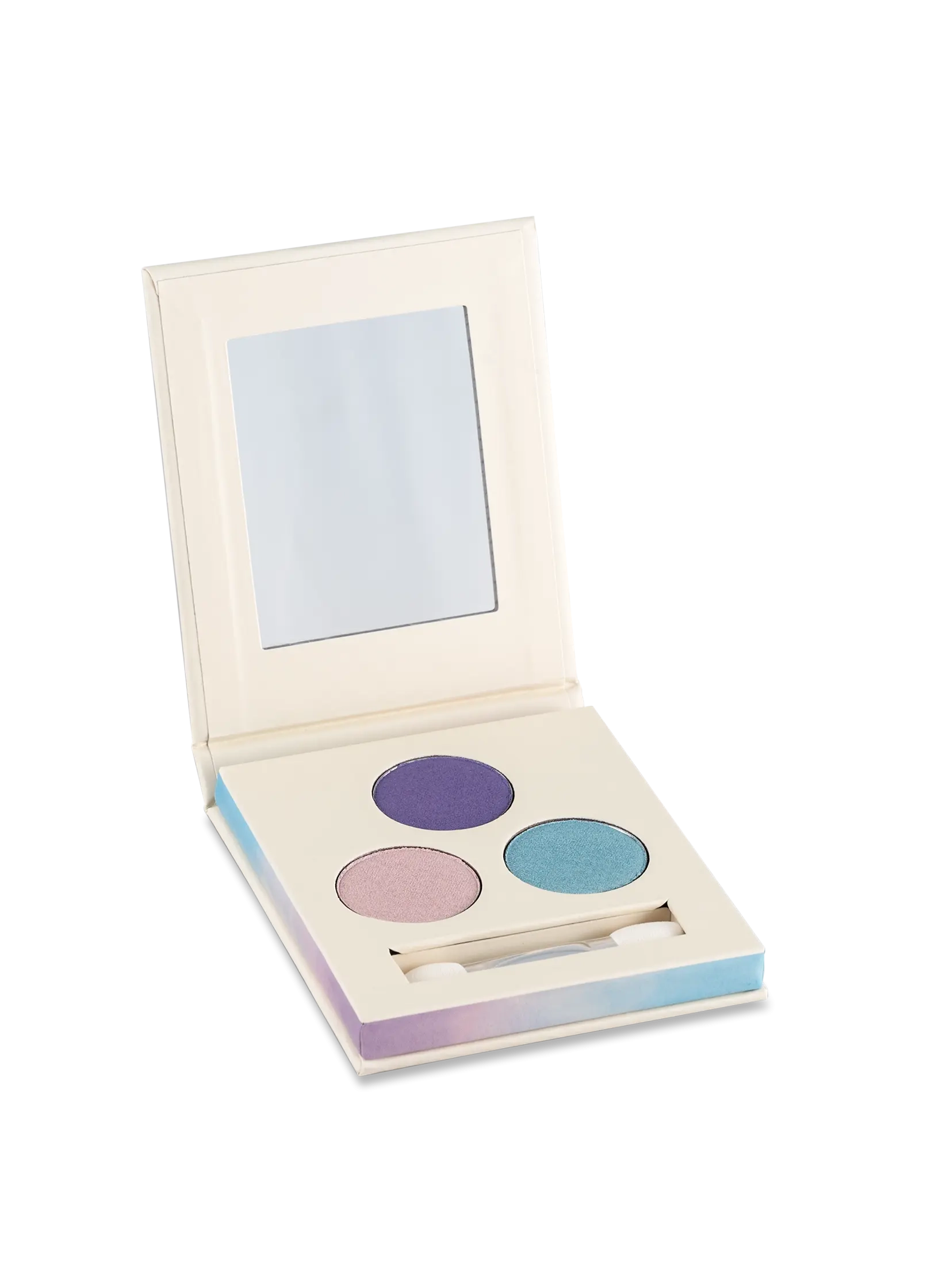 Avec les 3 couleurs Hiver de cette palette, contemplez le paysage brumeux d’une matinée enneigée. Les fards à paupières de cet assortiment sont irisés comme la rosée du matin et aux teintes froides comme les premiers frimats de l’hiver. De quoi passer de longues après-midi à jouer bien au chaud. Imaginez-vous en train de patiner sur un lac gelé, ou de jouer dans la neige fraîche. Nos fards à paupières aux couleurs hivernales vous permettront de créer des maquillages aux couleurs de la Reine des Neiges. Pour une touche spéciale, appliquez les 3 couleurs sur vos paupières et ajoutez un peu de brillance à votre journée !