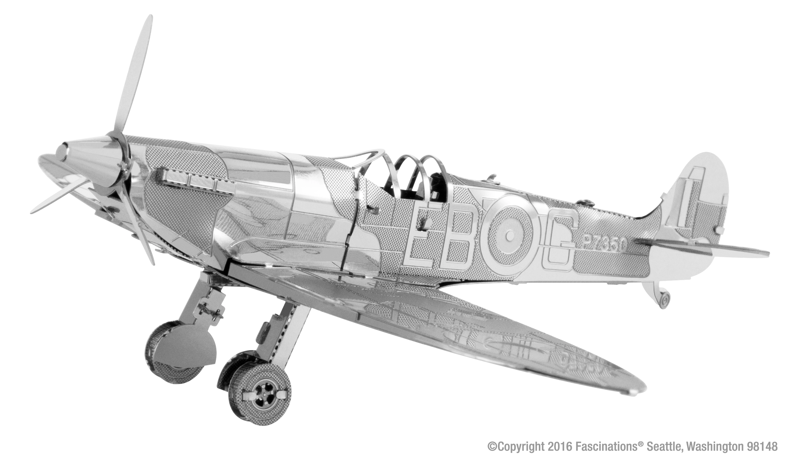 Assemblez le célèbre chasseur britannique Supermarine Spitfire avec ce puzzle 3D métallique de Metal Earth. Une maquette détaillée et fidèle, idéale pour les amateurs d'aviation et de modélisme.