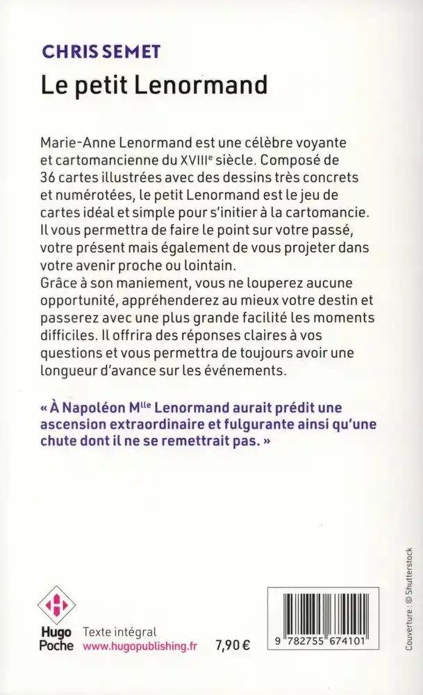 Il offrira des réponses claires à vos questions et vous permettra de toujours avoir une longueur d'avance sur les événements. "A Napoléon Mlle Lenormand aurait prédit une ascension extraordinaire et fulgurante ainsi qu'une chute dont il ne se remettrait pas".