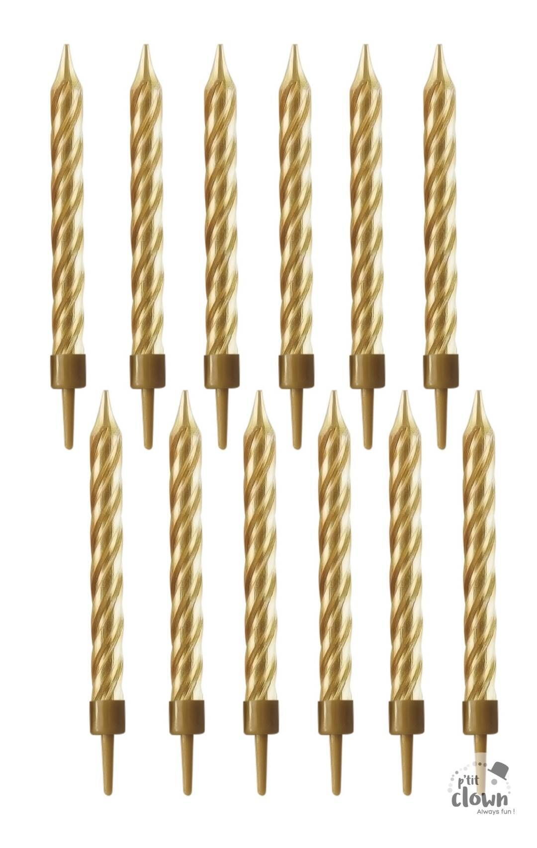 Ce lot comprend 12 bougies couleur or d'environ 7.5cm chacune. Parsemées dans votre gâteau d'anniversaire, ces bougies lui donnerons une toute autre allure, car le gâteau aussi à le droit à sa part de décoration. Les bougies d'anniversaire sont incontournables lors d'une soirée d'anniversaire, on attend tous le moment des vœux et l'arrivée du gâteau !
