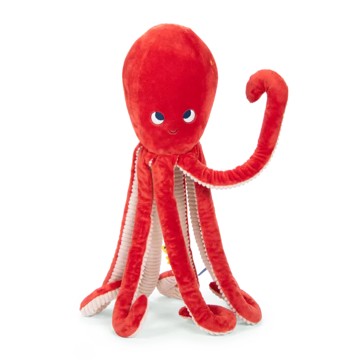 Découvrez la peluche Poulpe géant Paulie de Moulin Roty, un compagnon de 80 cm aux longs bras doux, idéal pour des câlins et pour décorer la chambre de votre enfant.