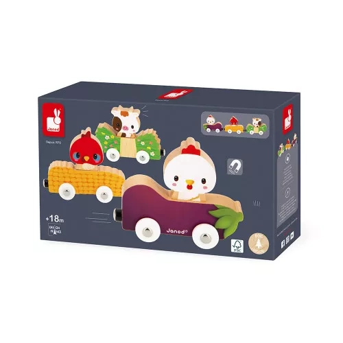 Les Animaux de la Ferme Magnétiques de Janod sont un jouet en bois certifié FSC™ conçu pour stimuler la motricité et l'imagination des enfants dès 18 mois. Composé de 3 voitures et 3 animaux interchangeables, ce jeu offre de multiples possibilités d'assemblage grâce à ses aimants.