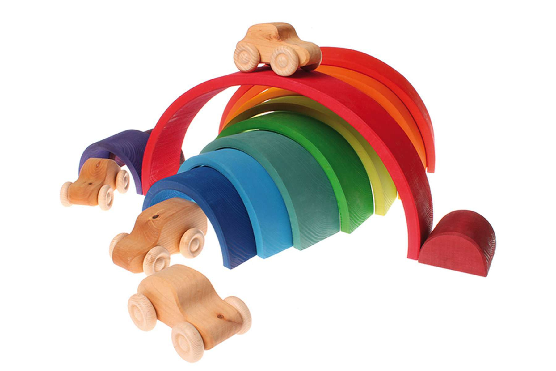 Un arc-en-ciel en bois Grimm's de 12 arcades, pour les plus petits de 1 an un très joli jeu de construction mais également chouette pour les enfants plus grands poru créer un pont, une grotte, un tunnel, un berceau pour les poupées, ....