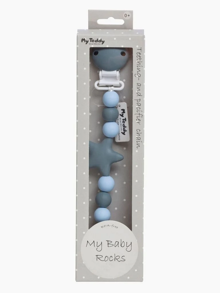 Attache tétine et anneau de dentition Étoile bleue et grise Maisies Baby