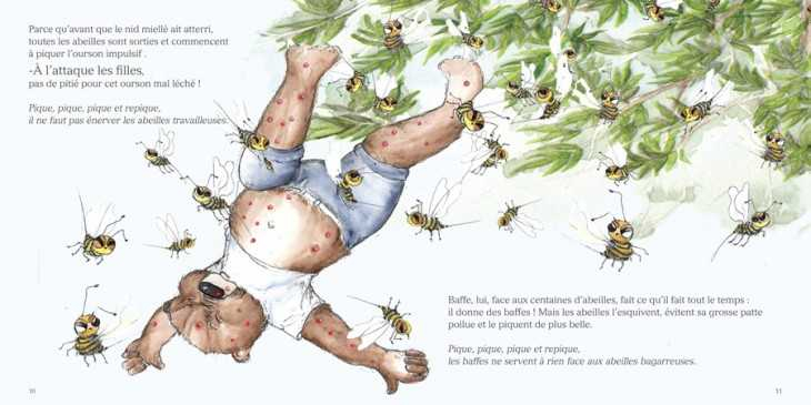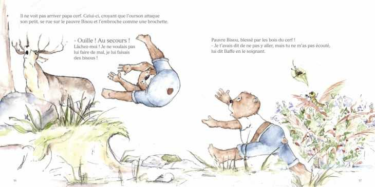 Baffe et Bisou, les oursons de madame Bear sont appelés « les distributeurs » par les animaux de la forêt parce qu’ils distribuent à tous moments des baffes et des bisous. Il faut que cela cesse ! De plus, donner des baffes et des bisous à tout le monde et en toute occasion peut s’avérer dangereux... pour eux !