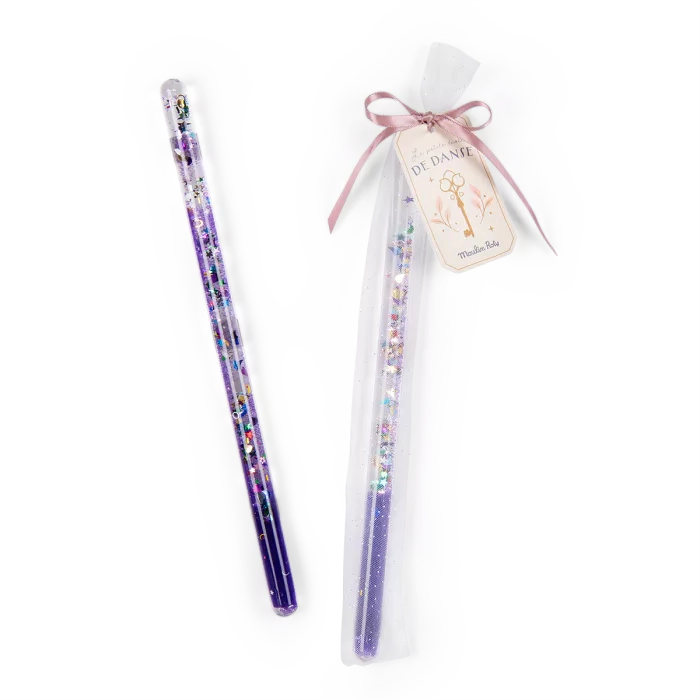 Voici l'accessoire indispensable des fées : la baguette magique ! Celle-ci contient du gel et une multitude de paillettes en forme de pastilles, d'étoiles, de coeurs ou de lunes. Elle est présentée dans un fourreau de tulle et est nouée d'un ruban de satin, un cadeau idéal pour les petits magiciens.