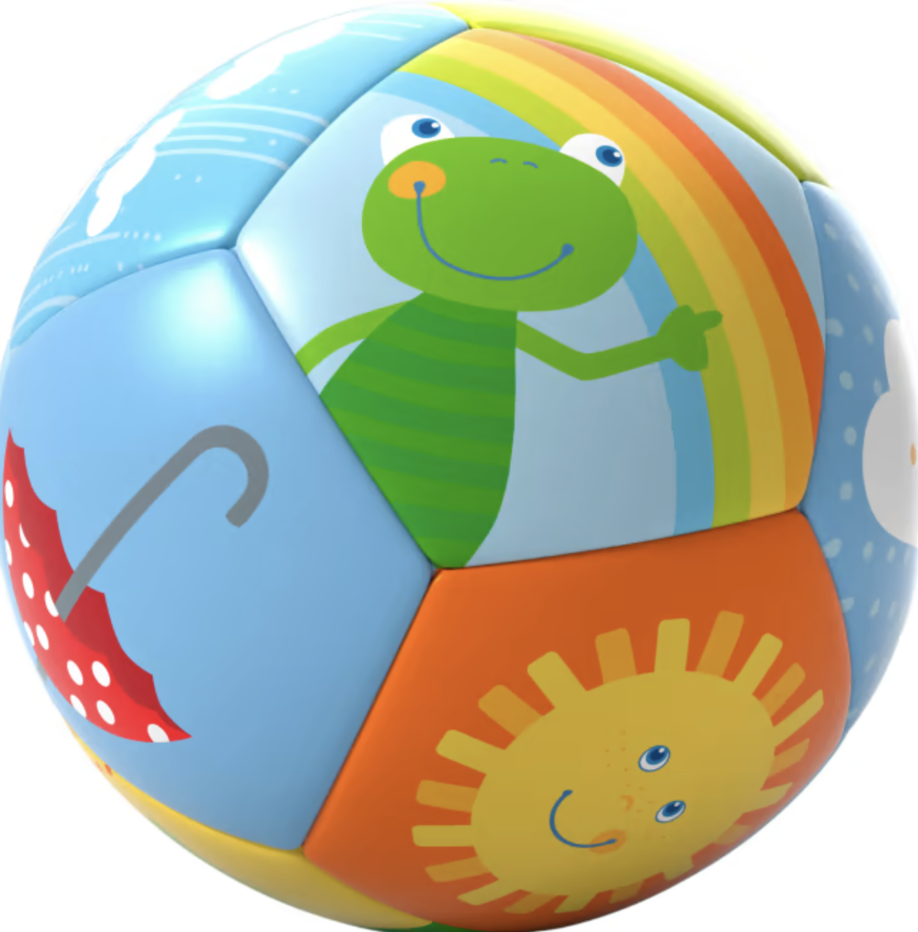 La Balle pour bébé La pluie de Haba est un jouet en bois qui émet un son de pluie apaisant lorsqu'on la retourne, idéal pour stimuler les sens de bébé dès 6 mois.