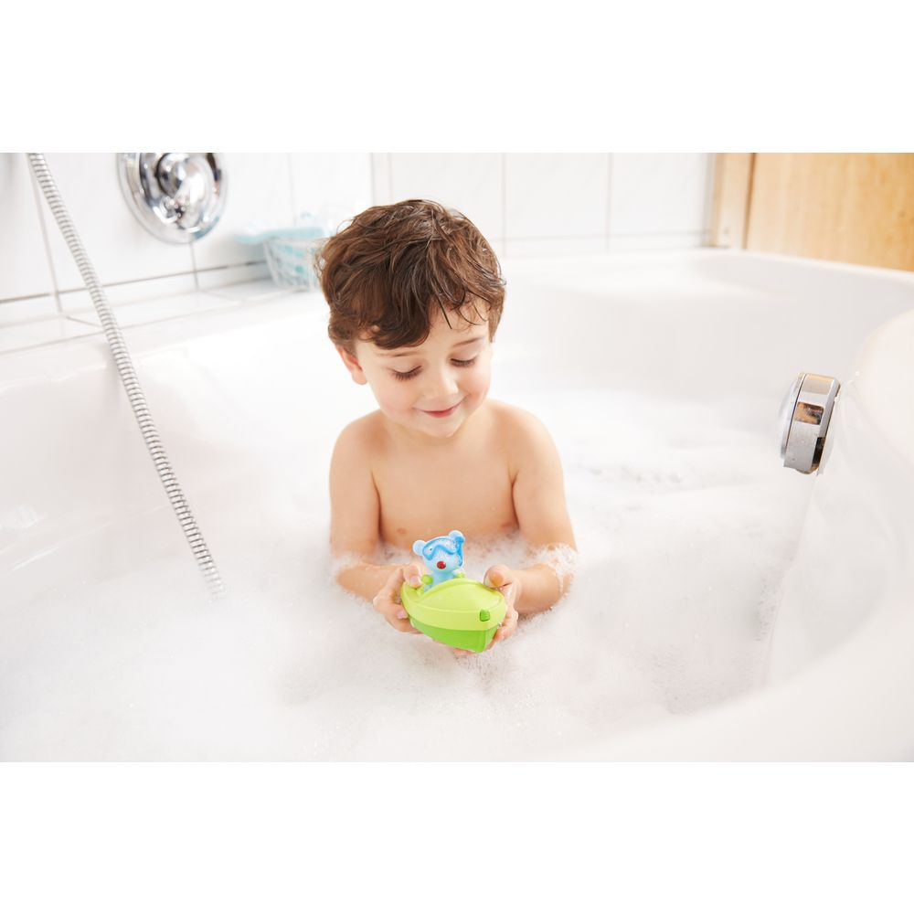 Le Bateau de bain Matelots animaux de Haba est un jouet flottant coloré, idéal pour les enfants dès 18 mois, favorisant le développement de la motricité fine et la coordination œil-main lors du bain.