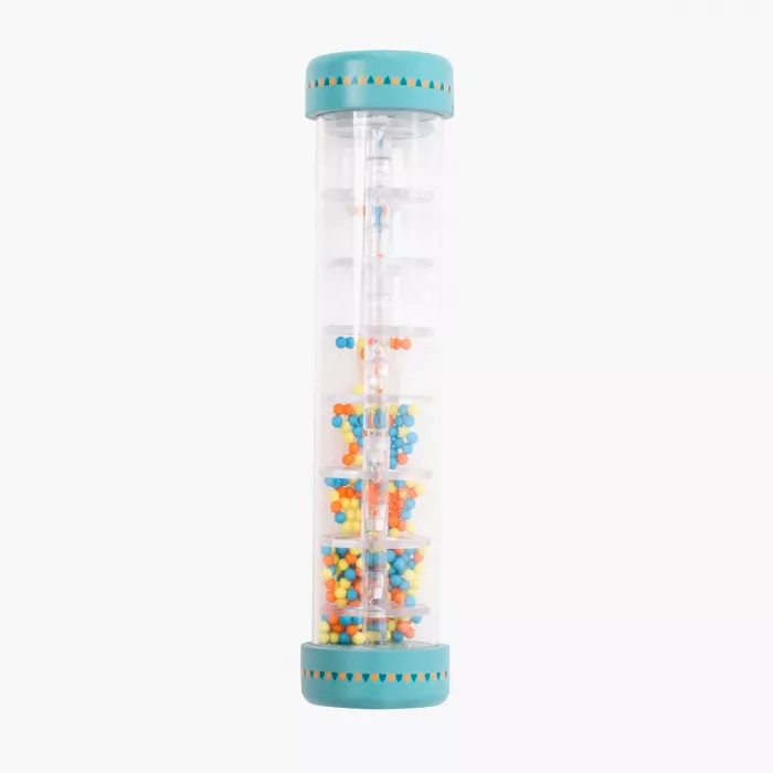 Le Bâton de pluie Le Voyage d'Olga de Moulin Roty est un jouet d'éveil musical en bois et plastique, adapté aux enfants dès 10 mois. En le retournant, les billes colorées produisent un son doux imitant la pluie, stimulant l'ouïe et la coordination de votre enfant.
