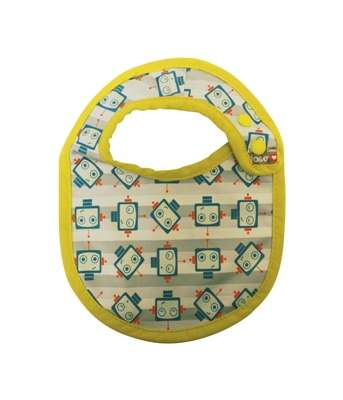 Bavoir réversible Close pour bébés dès 6 mois, avec motifs variés, face avant imperméable, dos en polaire douce et rabat récupérateur.