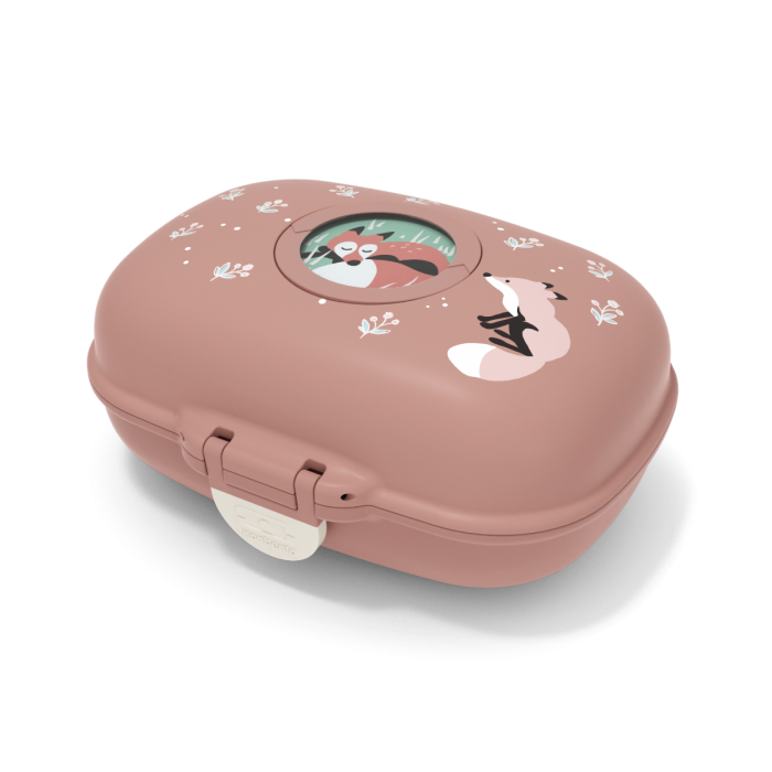 Le petit renard curieux de la boite à goûter MB Gram cannelle Fox invite les enfants à partir à la découverte de la forêt. En chemin, ils rencontreront ses amis l’ours et l’oiseau, et partageront ensemble un délicieux goûter à l’ombre des arbres !