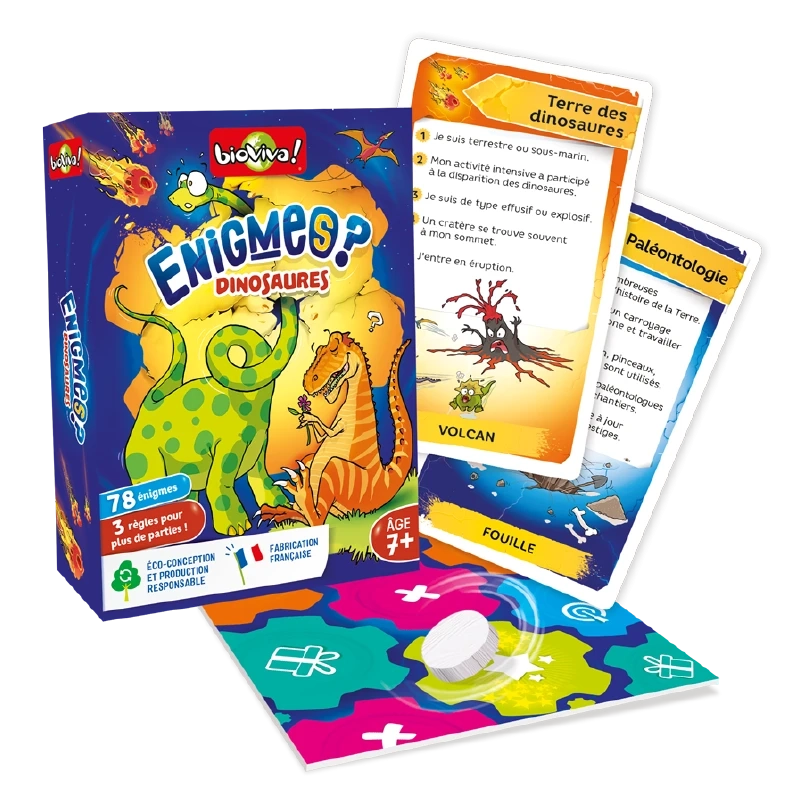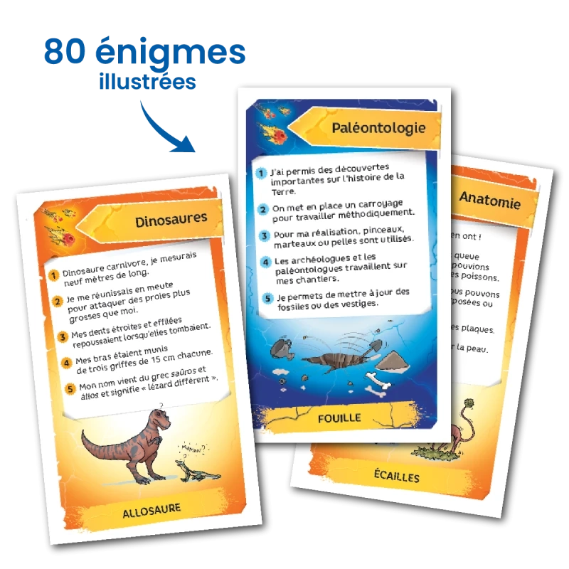 Avec Énigmes - Dinosaures tentez d’être le plus rapide à deviner les énigmes qui se cachent derrière 5 indices instructifs et amusants.