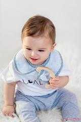 Bleu - Anneau de dentition en bois et son bavoir en bambou - Lullalove