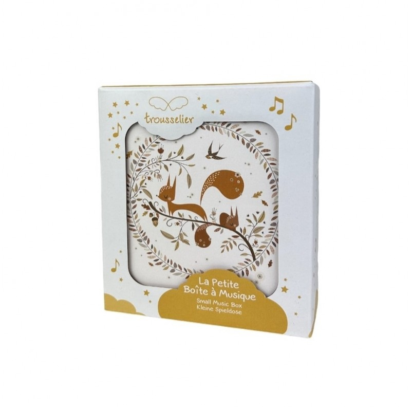 Offrez à votre enfant un voyage enchanteur avec la Boîte à Musique Cube Écureuil dans la Prairie de Trousselier. Ce coffret musical en bois, aux illustrations délicates, est conçu pour émerveiller et apaiser les tout-petits.