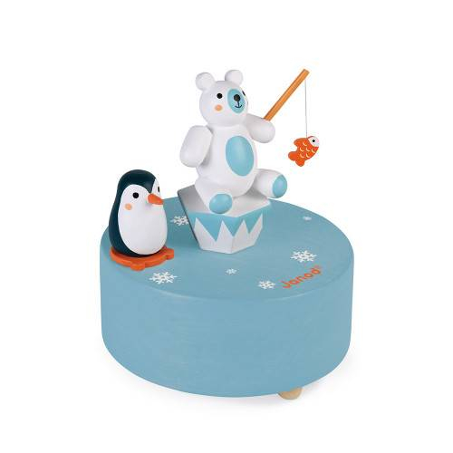 Apportez une touche de magie à la chambre de votre enfant avec la Boîte à Musique en Bois Banquise de Janod. Ce charmant objet décoratif met en scène un manchot tournant autour d'un ours polaire au son de la mélodie "Petit Jeannot". Dotée d'un remontoir mécanique et fabriquée en bois de haute qualité, cette boîte à musique est idéale pour les enfants à partir de 3 ans.