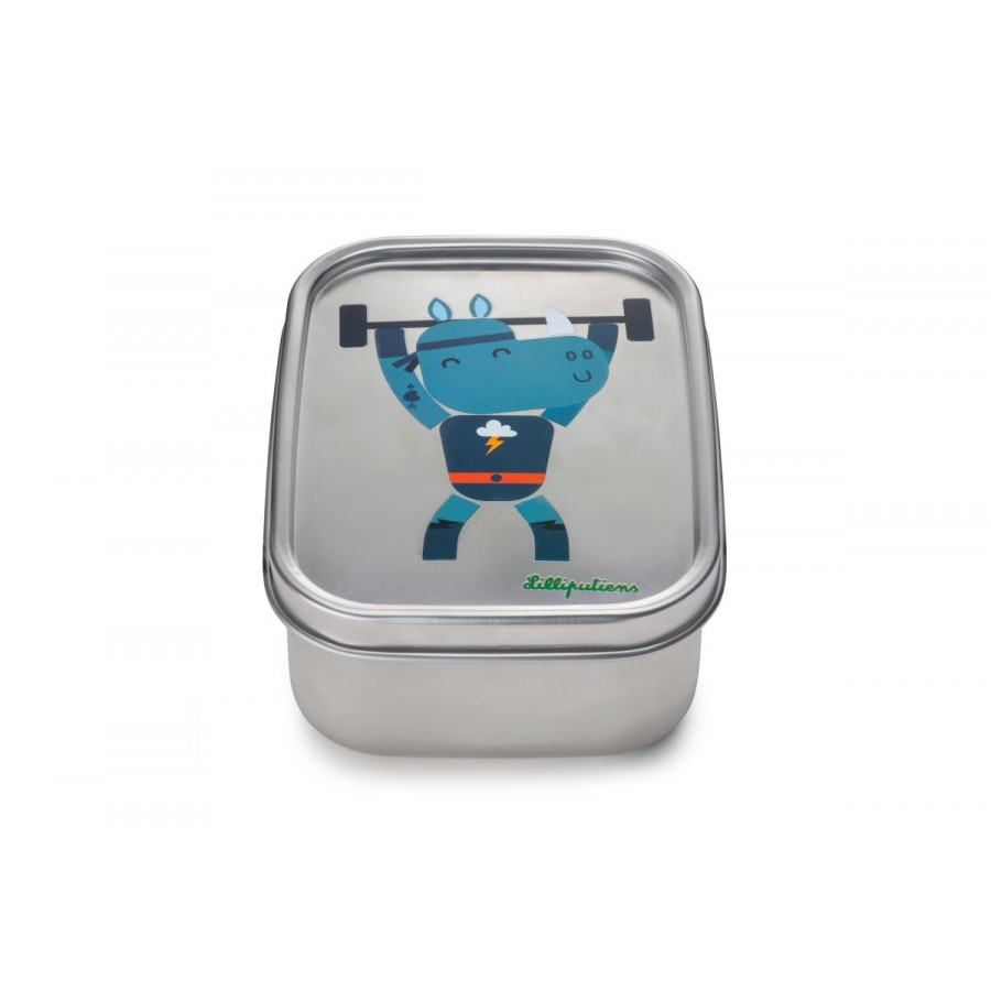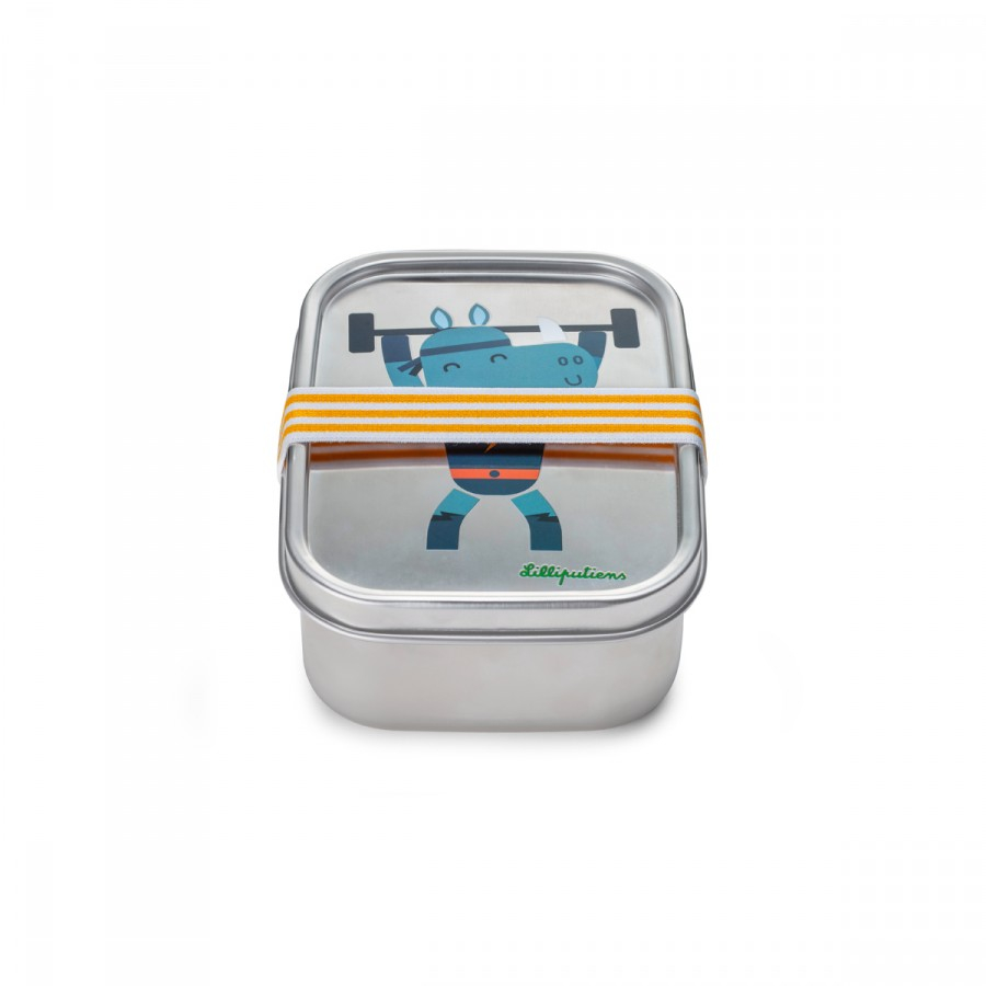 Cette lunch box à l’effigie de Marius le rhinocéros permettra à votre enfant de transporter l’ensemble de son repas que ce soit pour aller à l’école, en sortie scolaire ou en pique-nique. Aucun risque que le repas de votre bambin ne se renverse dans son sac grâce au couvercle et à l’élastique pour le maintenir.