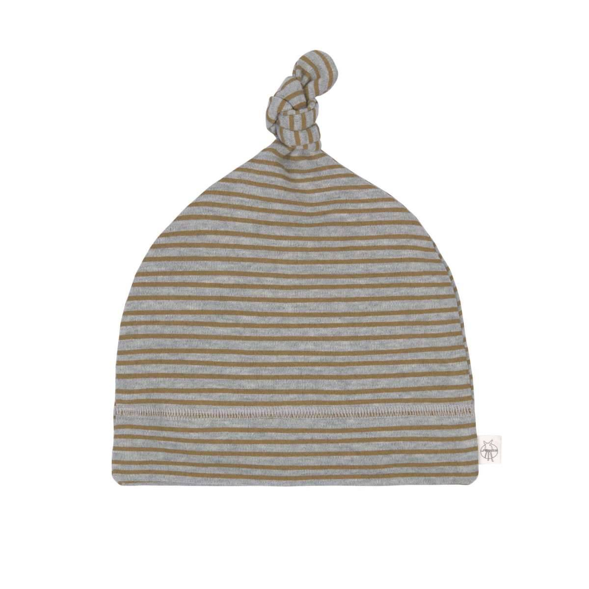 Bonnet bébé Lässig en coton biologique certifié GOTS, coloris Striped Grey Mélange, doux et confortable, avec nœud décoratif.