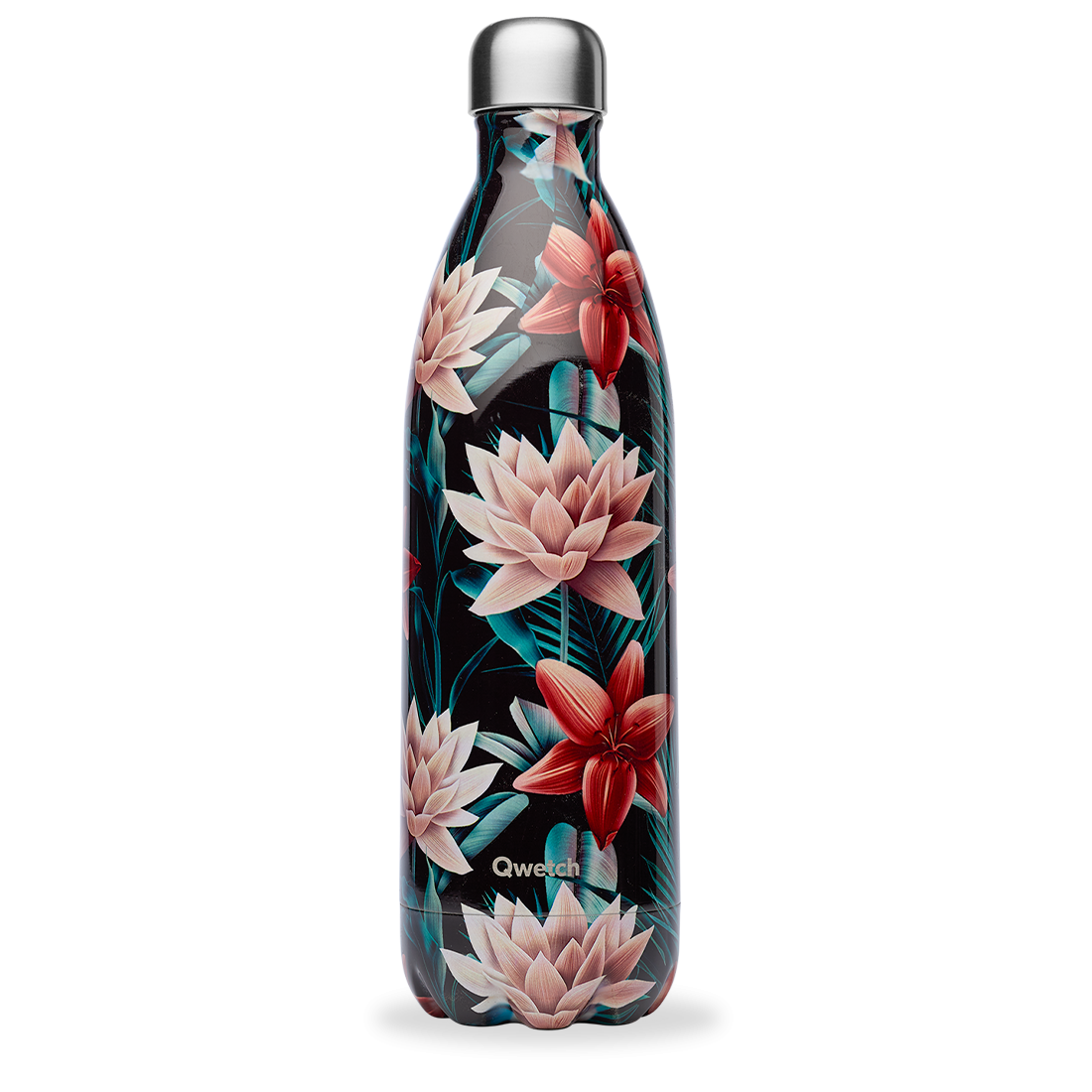 Bouteille Isotherme 1L Tropical noir Qwetch