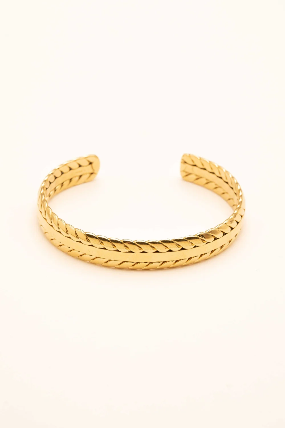 Jonc en acier inoxydable composé d'un motif épi de blé et d'une barre lisse. Malléable, le jonc se resserre ou s'agrandit.