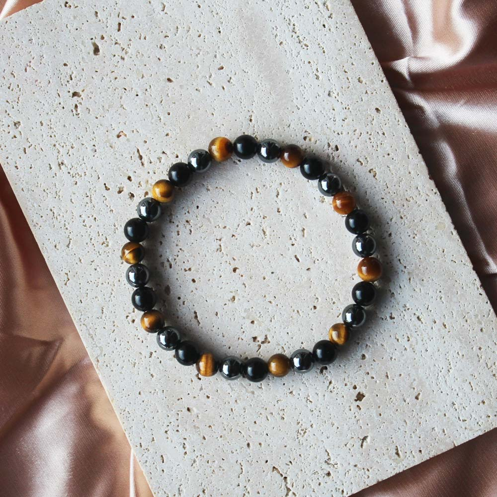 Bracelet Triple protection Labradorite, Tourmaline noire, Oeil de tigre perles 8mm