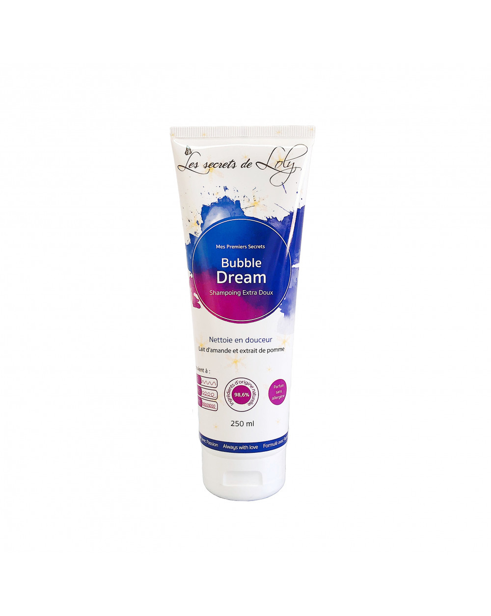 Formulé à 98,6 % d’origine naturelle, le shampoing extra-doux Bubble Dream est idéal pour les tous petits.