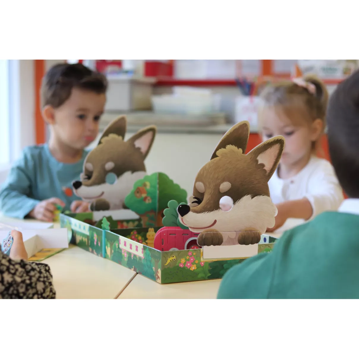 Cache-Cache Loustic est un jeu de société interactif pour enfants dès 3 ans, inspiré du jeu de cache-cache, favorisant la motricité et la perception spatiale.