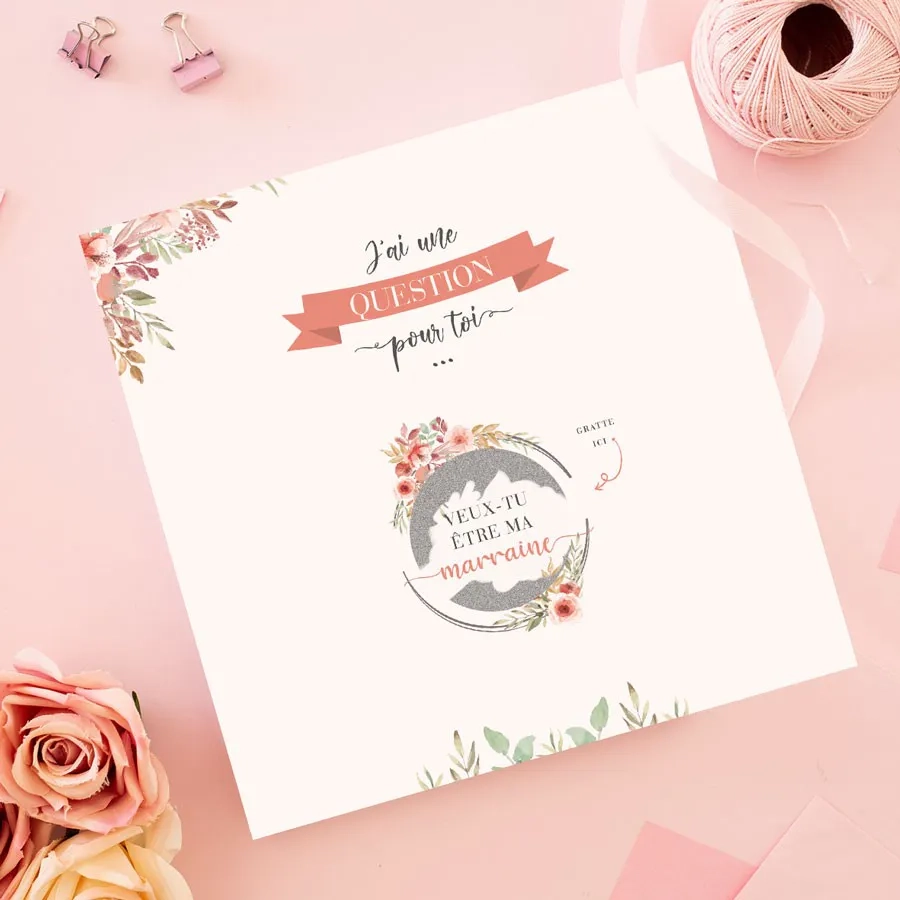 Sous la case à gratter : la demande "Veux-tu être ma marraine?"