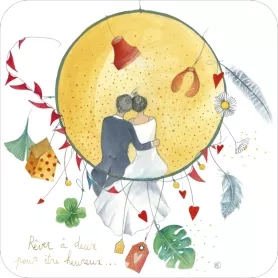 Exprimez vos sentiments avec la carte carrée 14x14 cm "Rêver à deux" d'Anso, une illustration poétique idéale pour partager vos messages d'amour et d'amitié.