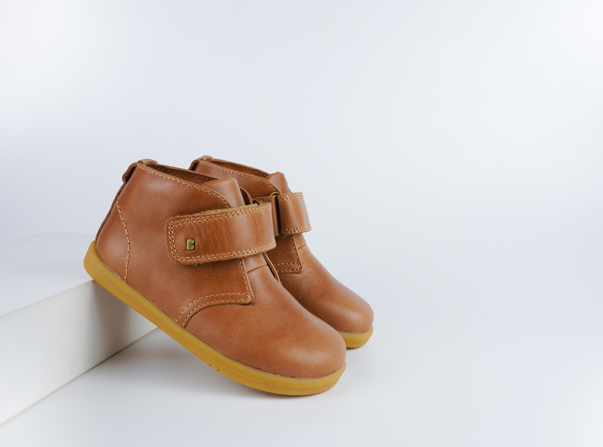 On obtient une forme de chaussure naturelle en créant une coupe qui colle à l’anatomie unique du pied du tout-petit [qui se déplace d’un pas assuré]. Cette conception assure une bonne coupe autour de la cheville et du talon et offre