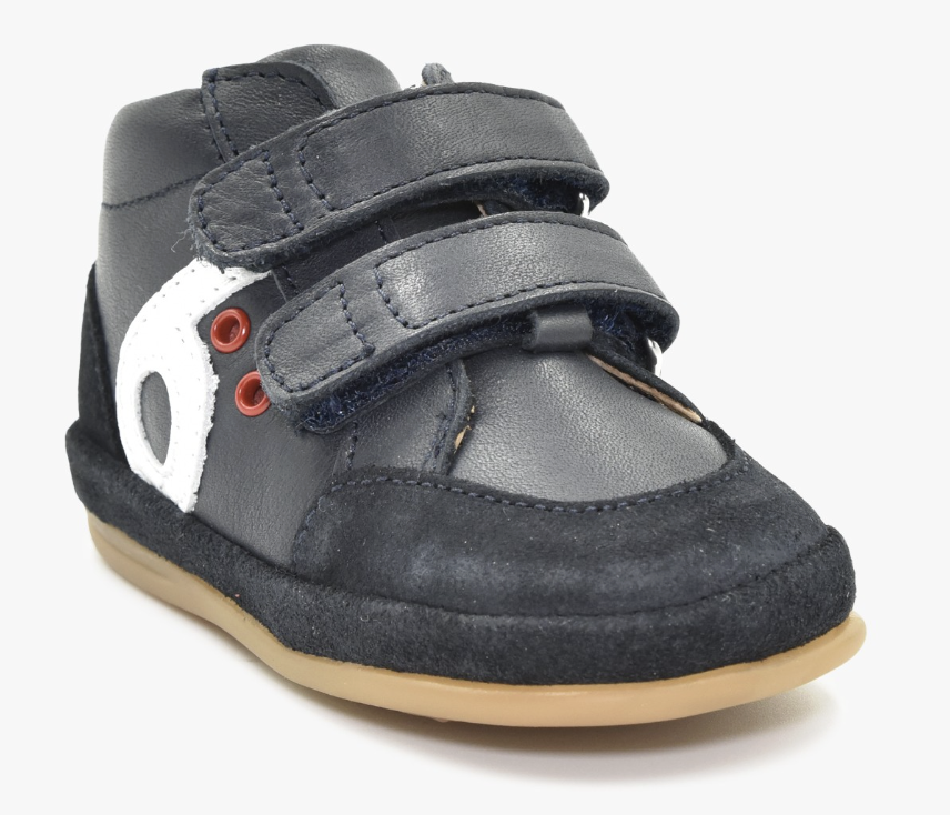 Chaussures premiers pas Benjie en cuir bleu marine et blanc, pointure 22, alliant confort, souplesse et matériaux de qualité pour le développement optimal de votre enfant.