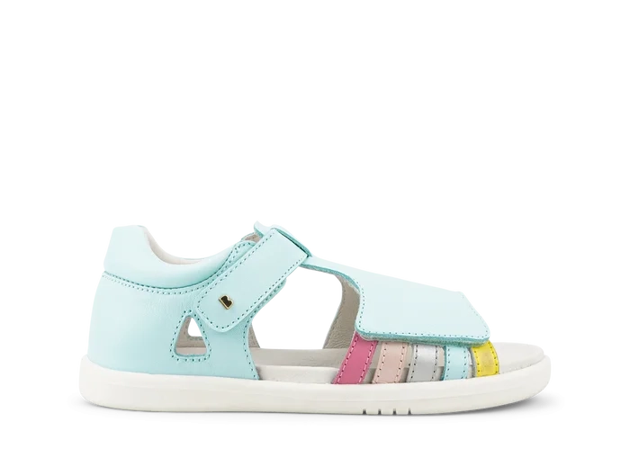 Les chaussures souples Mirror Mist + Dusk Pearl Rainbow Step Up de Bobux, en cuir Quickdry™, sont parfaites pour les premiers pas de votre enfant, offrant confort, respirabilité et soutien ergonomique.