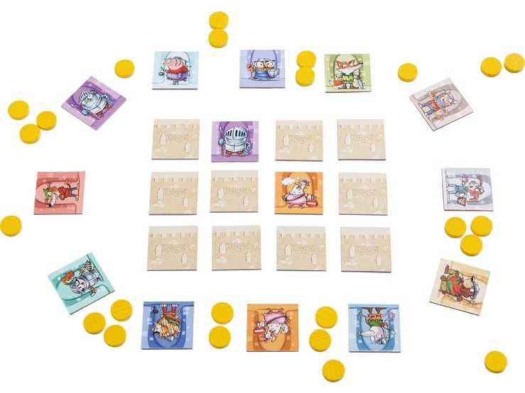 Contenu : 12 plaquettes de gardiens endormis, 12 plaquettes de gardiens éveillés, 24 pièces du trésor, 1 règle du jeu.