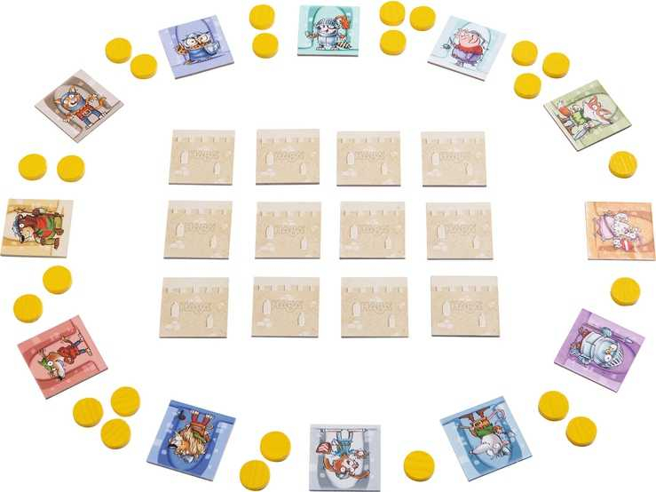 Tous les habitants du château dorment à poings fermés. Ils n'entendent pas les agiles brigands longer les murs sur la pointe des pieds... Seuls les 12 gardiens du fabuleux trésor du château ne clignent même pas des yeux... Même pas pour une petite seconde ? Le premier joueur qui surprend deux gardiens en train de sommeiller pourra dérober le trésor qu'ils surveillent. Mais pour cela, il faudra être bien attentif !