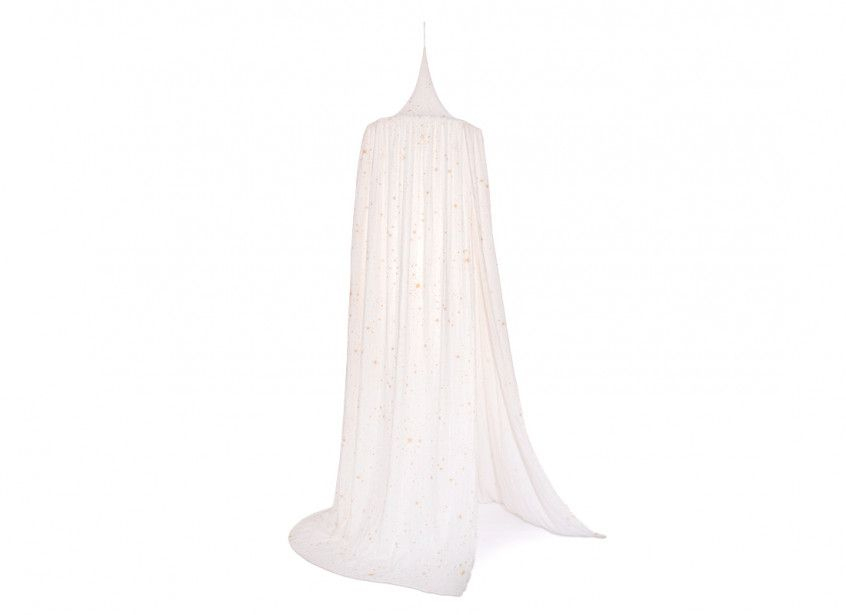 Son tissu en double-gaze de coton bio, léger mais résistant ; ses délicats drapés semblant flotter et ses élégants pompons... sont autant de détails qui font de cette canopée la décoration de lit idéale.