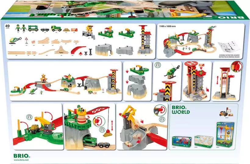 Utilisez les grues mobiles, le train de transport de marchandises avec ses wagons, le camion robuste, ou encore l’hélicoptère pour acheminer les cargaisons sur ce chantier de montagne riche en défis. Parfait pour enrichir n'importe quel circuit BRIO World, ce coffret est un excellent choix pour agrandir une collection existante ou débuter une nouvelle aventure ferroviaire.