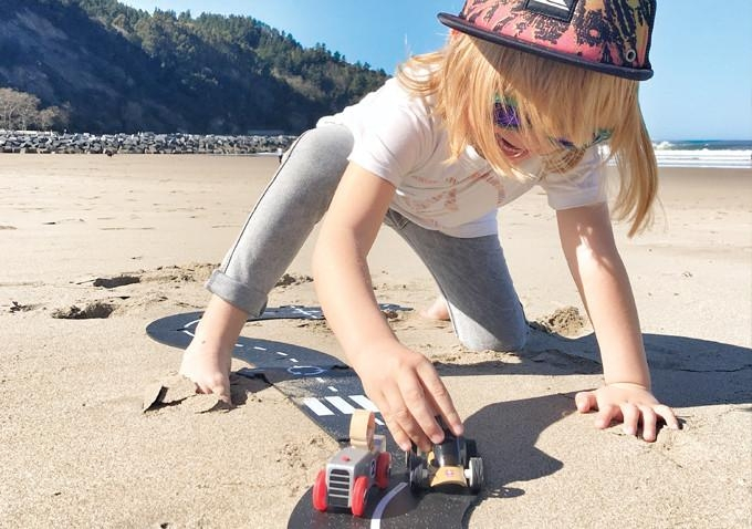 - Créez une route sur n’importe quelle surface: sur un tapis, sur le carrelage, sur la plage ou pourquoi pas la neige, … c’est possible!