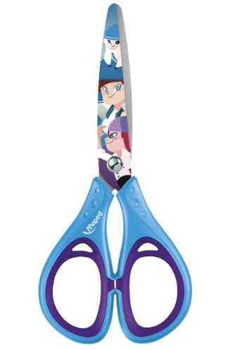Blister ciseaux droitier ou gaucher 13cm pour enfant lame inox et décorée. Décors assortis. MAPED Tatoo.