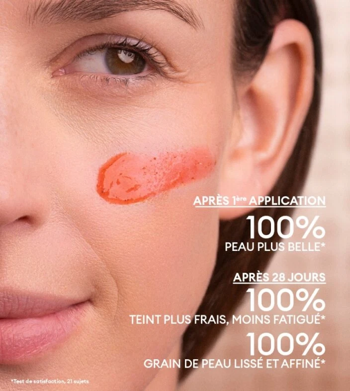 Sa formule double action réactive les mécanismes de l’éclat en surface et en profondeur pour stimuler le renouvellement cellulaire pour un teint frais et éclatant de santé. a Les cellules mortes sont éliminées, la peau est souple, douce, plus belle et lumineuse.