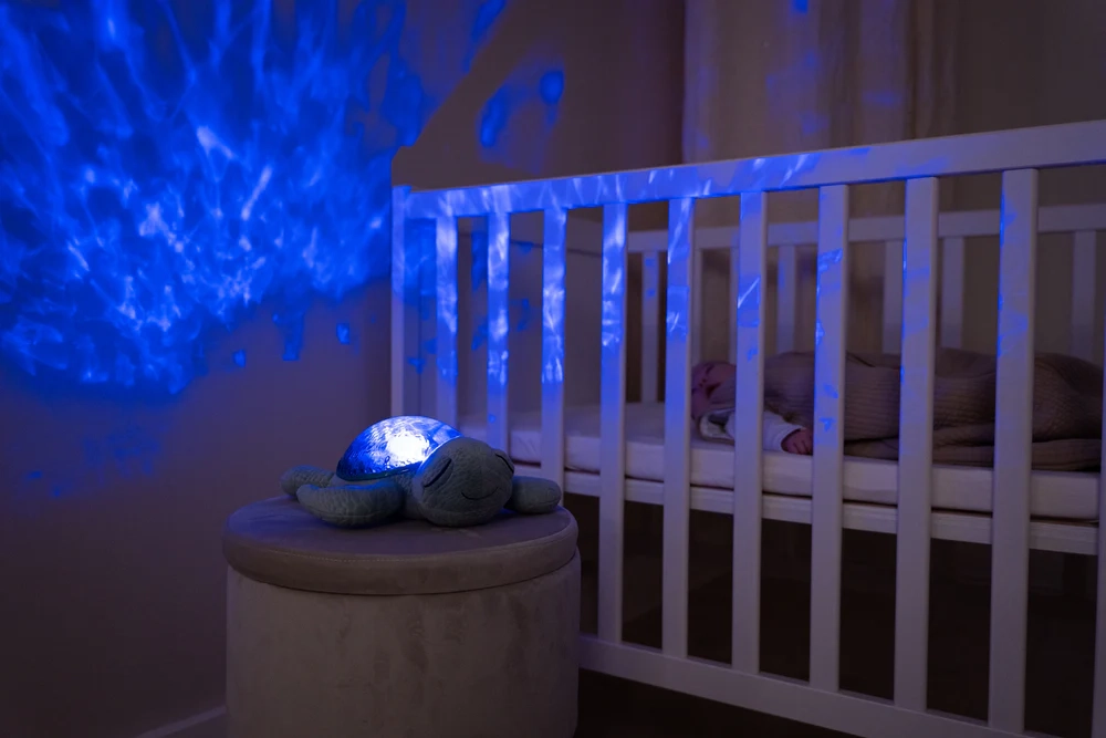La Tranquil Turtle™ Green rechargeable de Cloud B est une veilleuse éco-responsable qui projette des vagues océaniques en mouvement et diffuse des sons apaisants pour aider votre enfant à s'endormir sereinement.