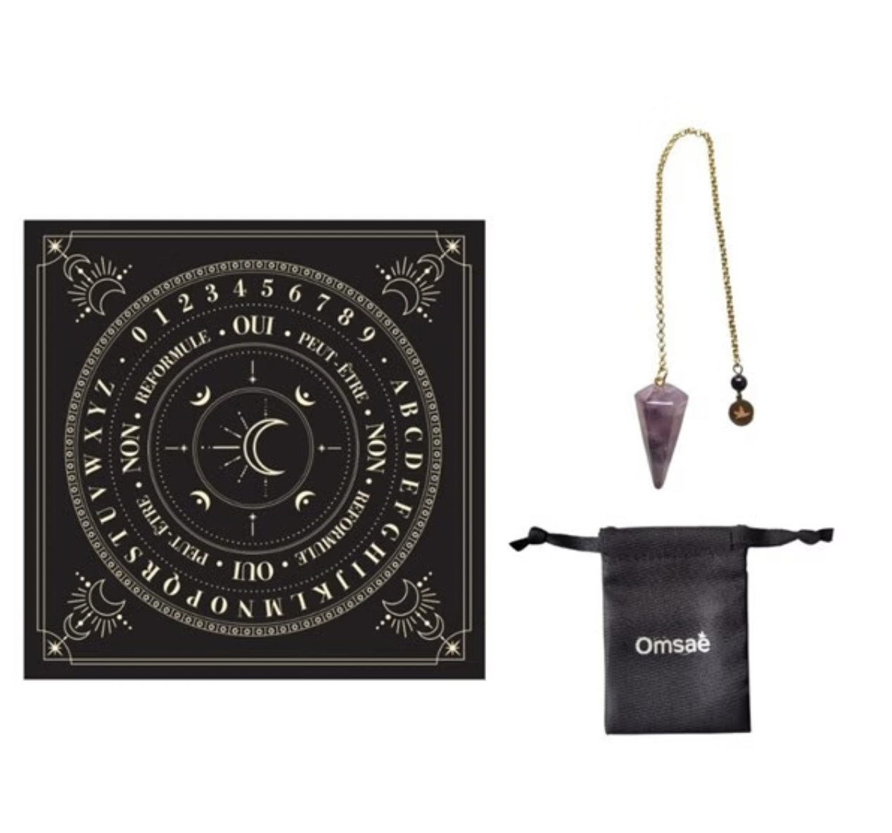 La radiesthésie ou sensibilité aux rayonnements, est une technique basée sur le ressenti des radiations qui émanent de notre corps ou de la Terre pour nous permettre de faire émerger des réponses cachées. Ce coffret se compose d'accessoires indispensables pour les séances de divination. Un pendule hexagonal en améthyste : prolongement de l'âme, le pendule amplifie les ondes vibratoires émises par le corps et permet de révéler les réponses cachées dans notre subconscient. Grâce aux vibrations violettes apaisantes de sa pierre naturelle d'améthyste, le pendule viendra renforcer l'intuition. Une nappe de divination : avant de débuter la séance, créer son autel dans un espace calme et apaisant et installer la nappe en son centre. Chaque lettre et chaque chiffre y est représenté pour permettre au pendule d'indiquer une réponse précise. Quelle que soit la question, ouverte ou fermée, le pendule pourra y répondre…. Un pochon de transport : glisser le pendule à l’intérieur pour l’emporter facilement avec soi.