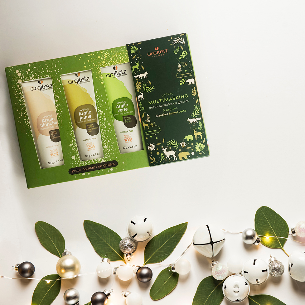 Coffret de 3 mini-tubes de 30g pour peaux normales ou grasses. (Blanche, verte, jaune).