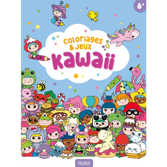 Découvrez 'Coloriages et jeux Kawaii' de Mayumi Jezewski, un livre de 80 pages rempli d'activités ludiques et de coloriages adorables pour les enfants dès 6 ans.