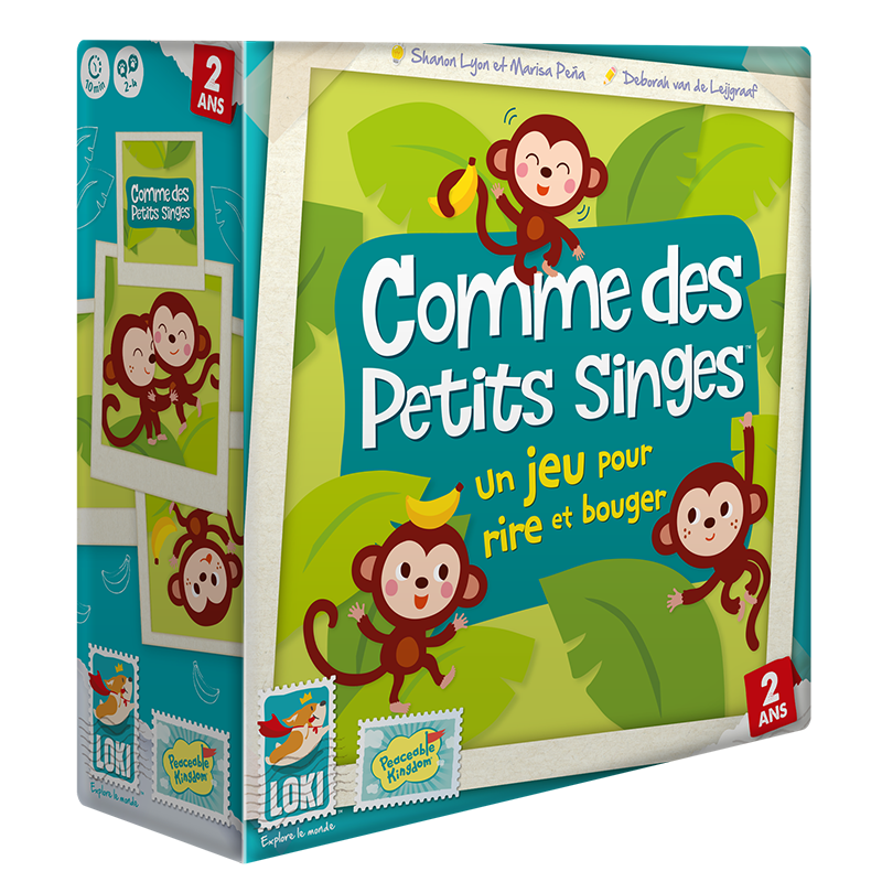 Comme des Petits Singes est un jeu d'ambiance interactif pour enfants dès 2 ans, favorisant la motricité et la complicité familiale à travers des actions amusantes et coopératives.
