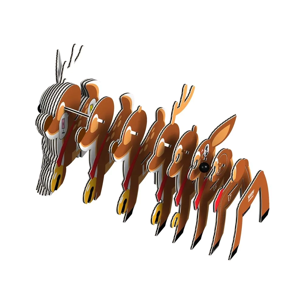 Assemblez le Renne Eugy 3D en carton recyclé pour une décoration de Noël écologique et ludique.