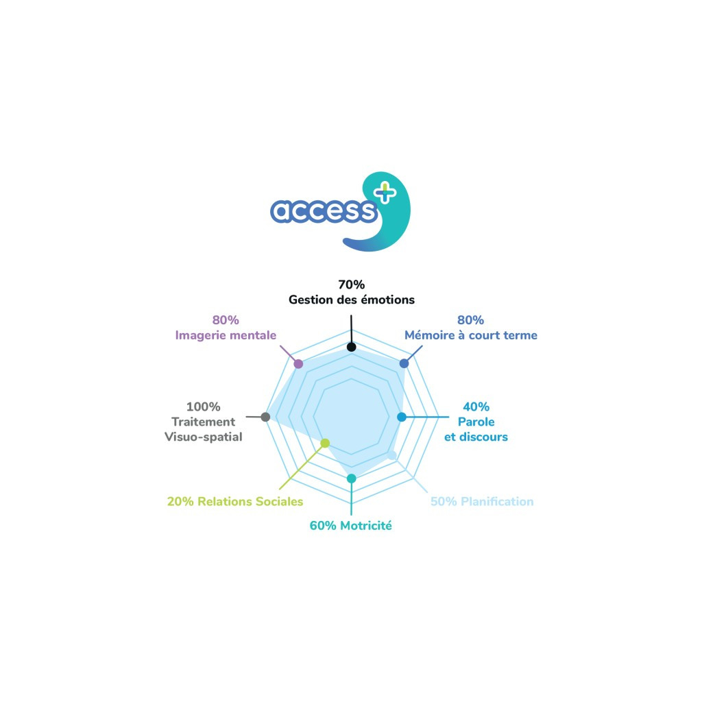 Cortex Access+ est une version adaptée du célèbre jeu de défis, conçue pour les personnes présentant des troubles cognitifs. Avec des cartes de plus grande taille, des défis sélectionnés pour leur accessibilité, un livret de solutions et deux niveaux de difficulté, ce jeu sollicite l'attention, la mémoire, la réflexion et le calcul. Idéal pour 1 à 4 joueurs, dès 8 ans, pour des parties de 15 à 30 minutes.