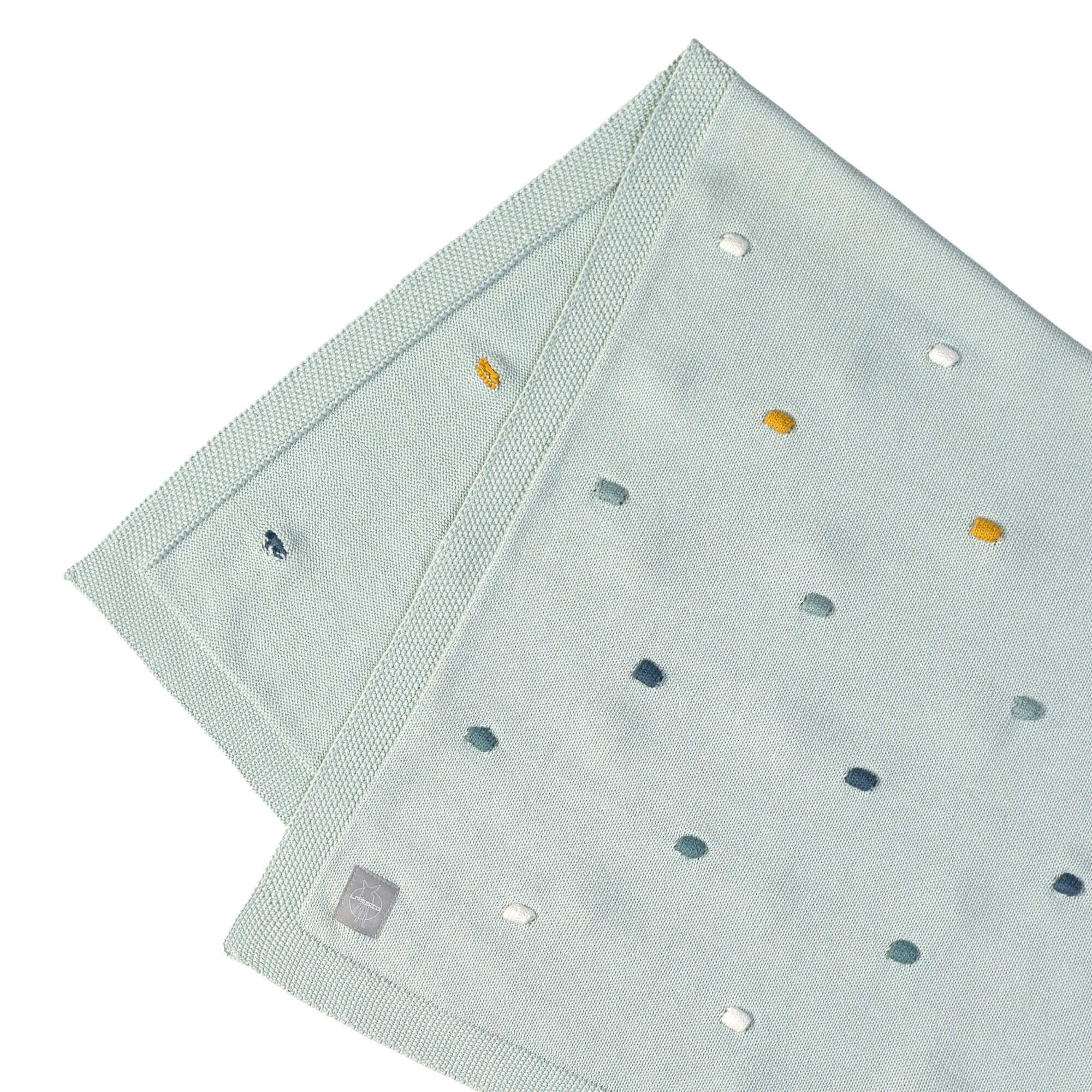 La couverture tricotée en coton bio de LÄSSIG, certifiée GOTS, offre douceur et polyvalence pour le confort de votre bébé. Avec ses dimensions de 80 x 110 cm et son design réversible à pois menthe clair, elle est idéale pour diverses utilisations : matelas, tapis de jeu, lange ou moments de câlins. Un accessoire indispensable alliant élégance et respect de l'environnement.