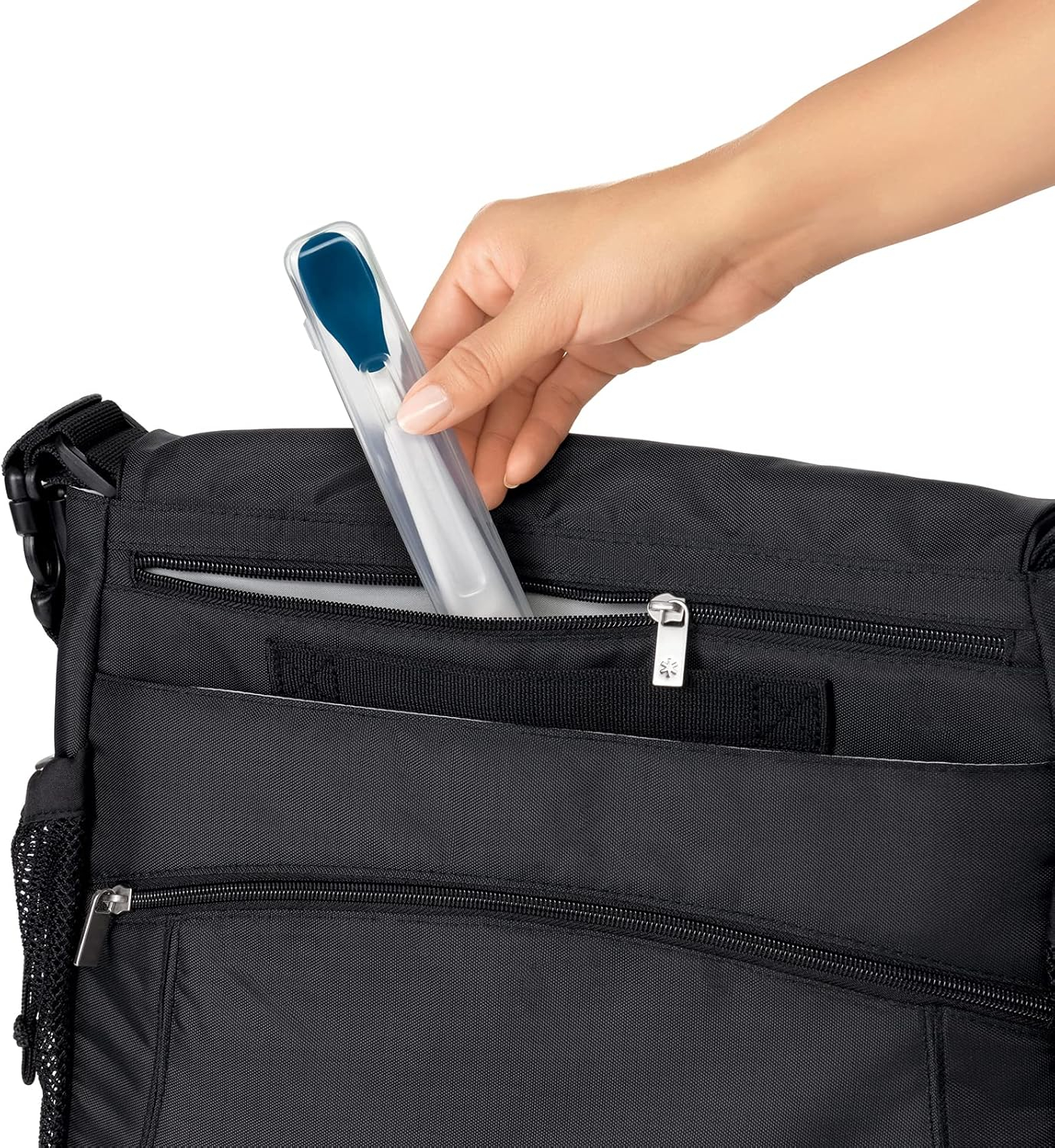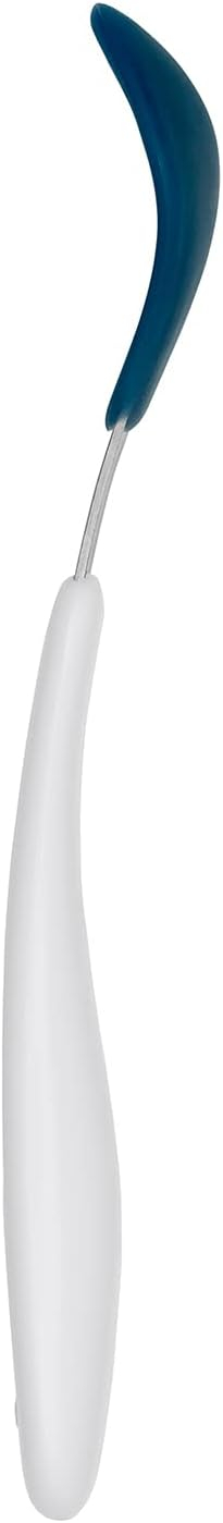La cuillère On-the-go pour bébé Navy d'OXO Tot est spécialement conçue pour faciliter les repas de votre enfant, que ce soit à la maison ou en déplacement. Son embout en silicone souple est doux pour les gencives sensibles de bébé, tandis que sa forme étroite et peu profonde permet de donner la quantité idéale de nourriture à chaque bouchée. Les bords en silicone sont parfaits pour racler les fonds de purée des petits bols ou pour essuyer délicatement le visage de votre enfant.